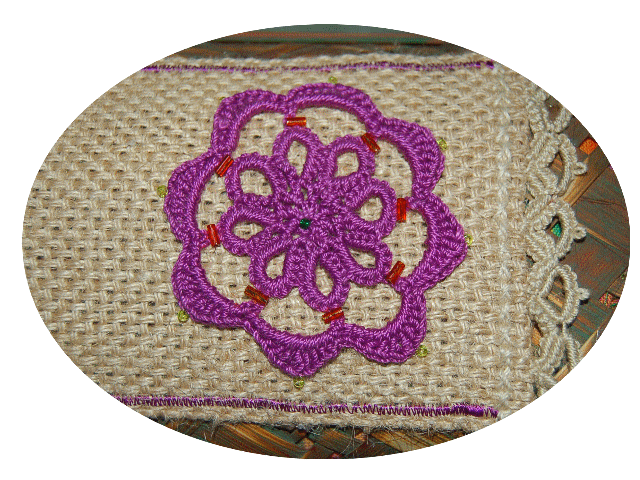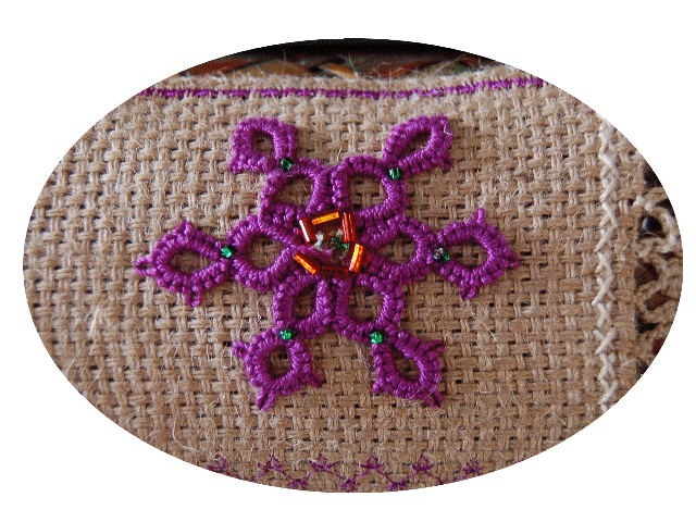Dans mon fameux super magazine sur la frivolité, je n'avais pas encore compris qu'il y avait deux types de frivolités , ce qui m'a apporté quelques soucis dans les réalisations que je n'arrivais pas à faire avec mes cro-tat , normal, il fallait une aiguille , donc après quelques recherches j'ai trouvé un site "Filoselle" (voir le lien dans les liens techniques), et j'ai donc fais mes premiers pas avec une vieille aiguille (un peu courte je l'avoue!!!....) et la magie a bien fonctionnée, j'ai réalisé une bordure avec mon idée à moi, car j'ai un petit projet de déco de boite à bijoux que je compte aggrémenter avec toutes ces nouvelles techniques...la suite au prochain numéro...